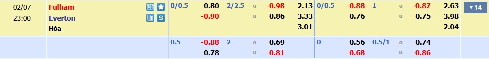 Kèo châu Á trận Fulham vs Everton để Fulham chấp 0/0.5 (1/4 trái):